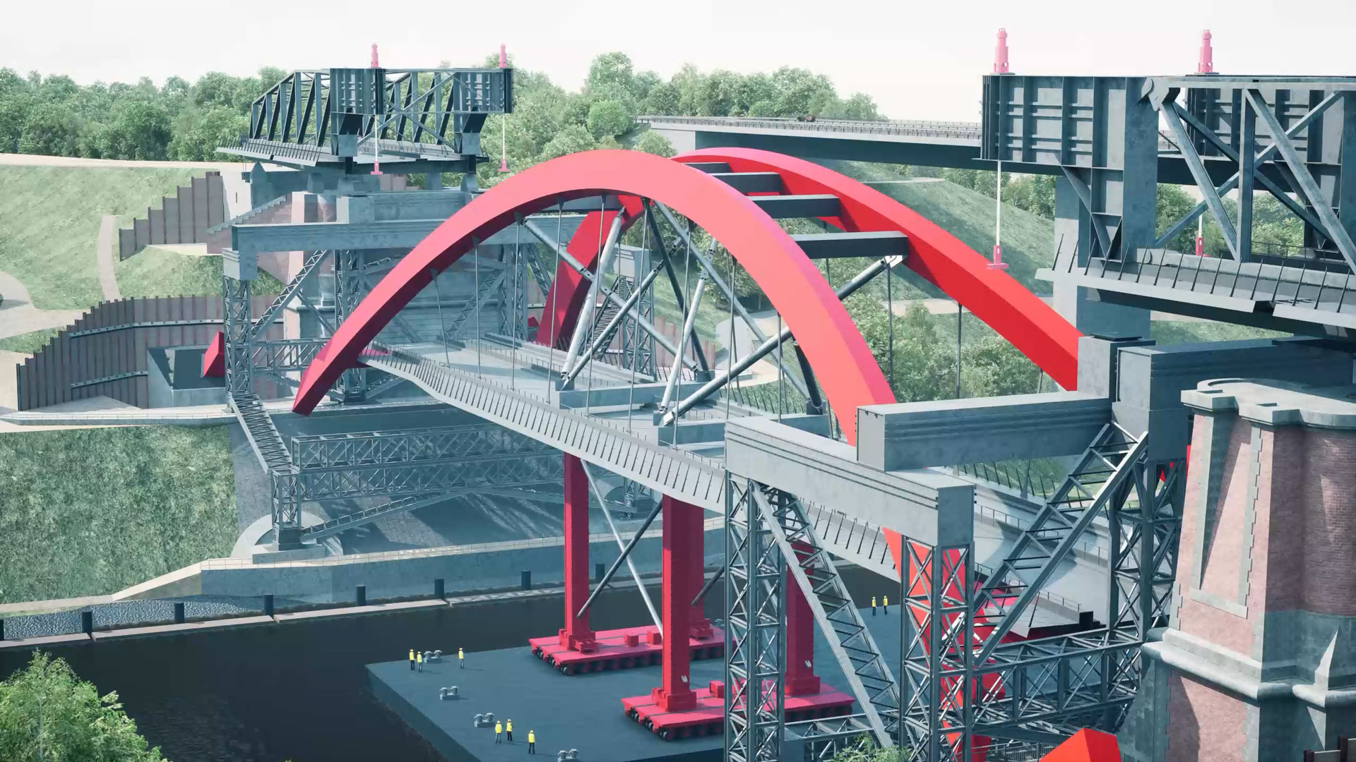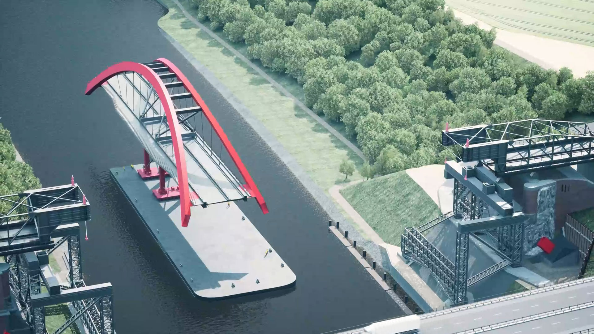 Die in die Jahre gekommene Levensauer Hochbrücke in Kiel, welche den Nord-Ostsee-Kanal überspannt, soll durch eine neue, breitere Brücke ersetzt werden. Die Bauablaufanimation zeigt die jeweiligen Bauphasen und die entsprechenden Vorgänge detailliert. Somit können Projektbeteiligte sowie die Öffentlichkeit ein Umfangreiches Bild über den Baufortschritt erhalten.