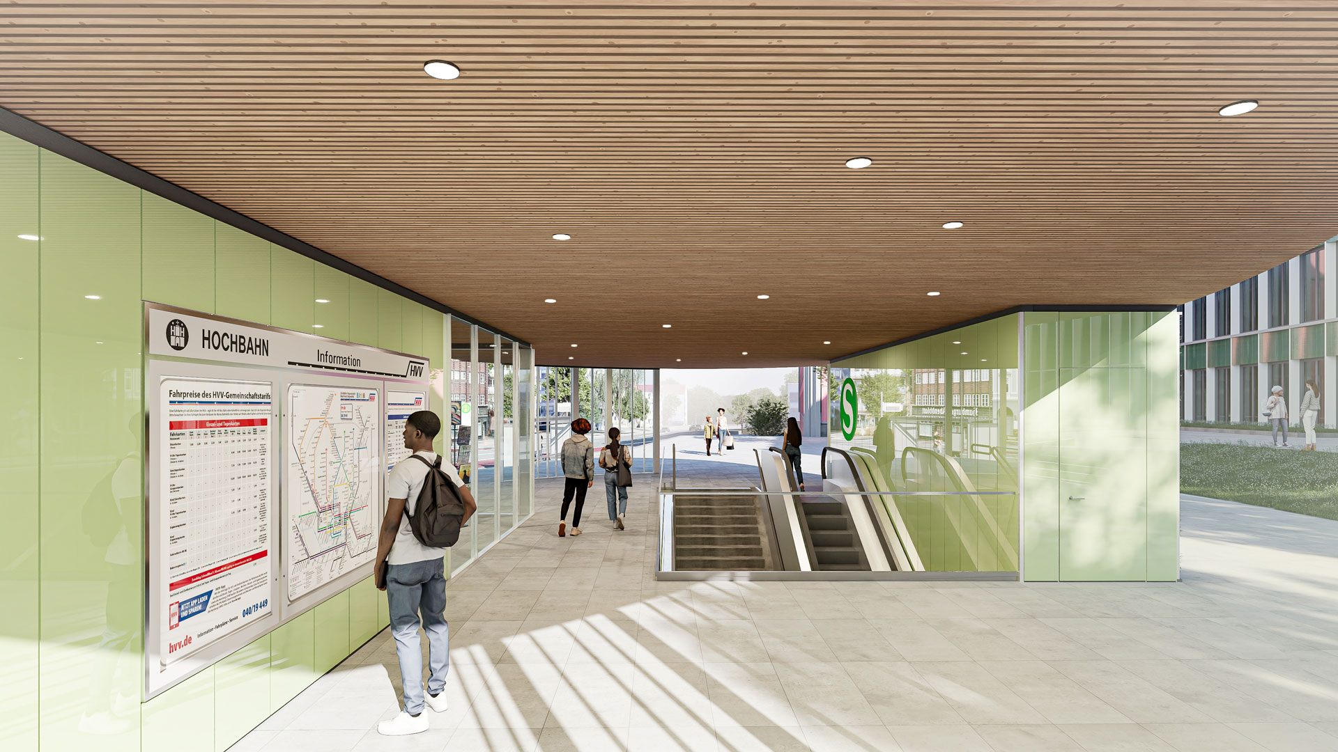 Nachhaltigkeit und Wirtschaftlichkeit prägen das Gesamtkonzept: Die Gebäude sind modular, rückbaubar und anpassungsfähig. Beide Zugänge bilden ein gestalterisch kohärentes Ensemble, das Verkehr, Stadtquartier und Grünraum zeitgemäß verbindet.